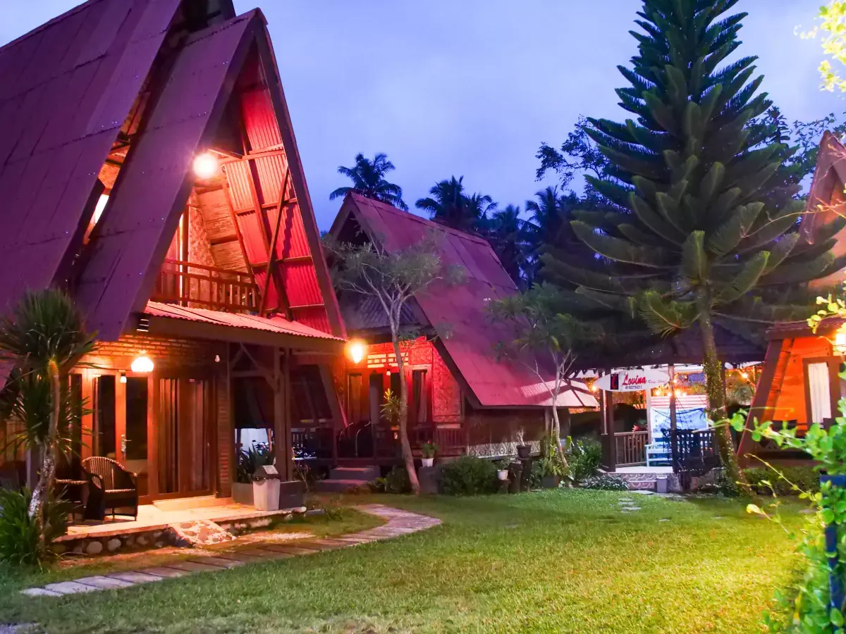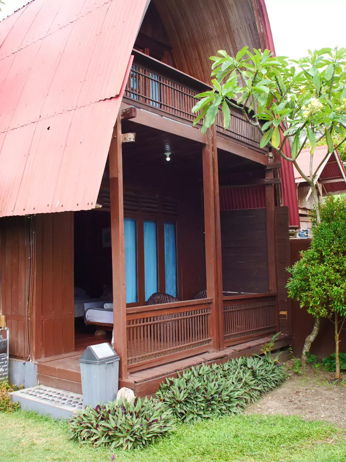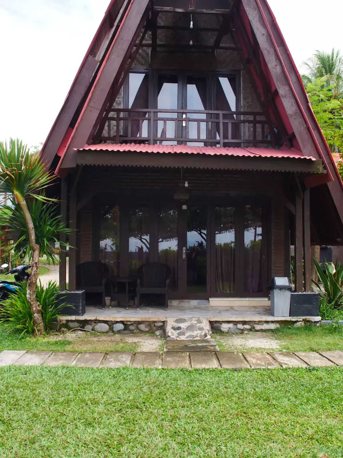 Two storey A-Frame design with air-conditioning and private bathroom. Downstairs has two twin beds and upstairs has two twin beds. Private balcony with ocean views.