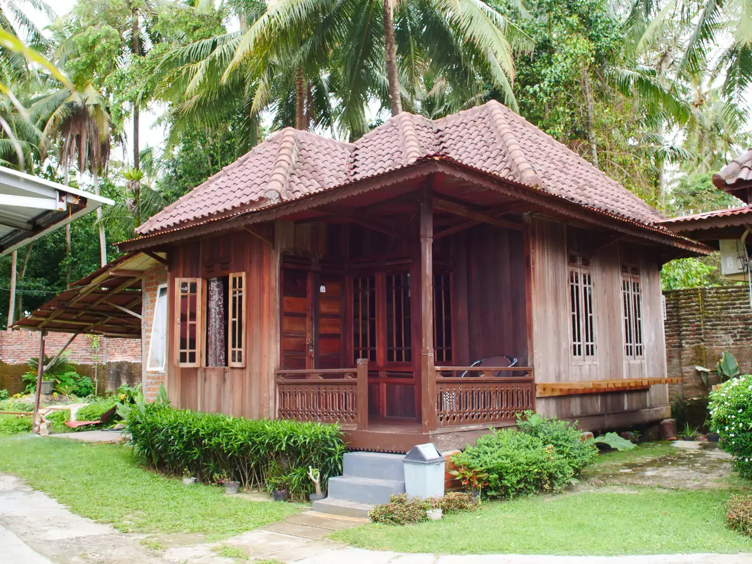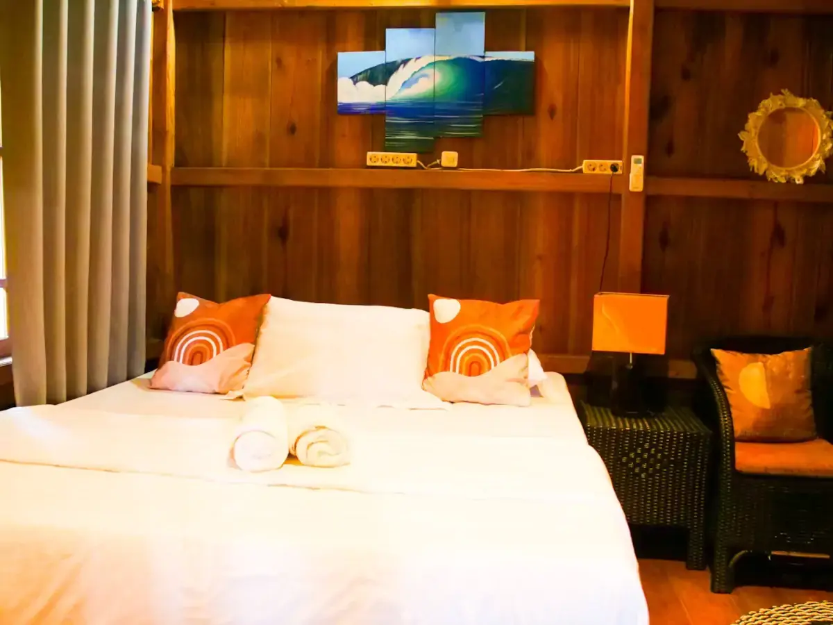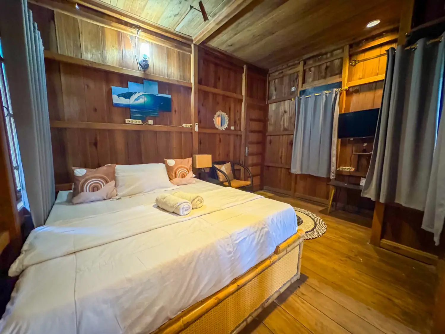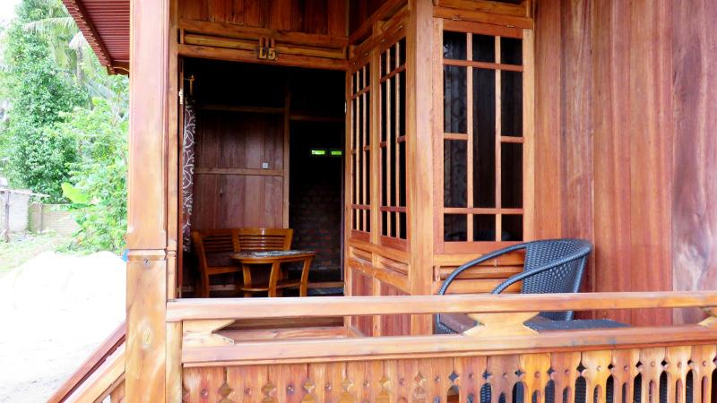 One Natural country wood style bungalow with two bedrooms with King size beds. Private bathroom, balcony and small lounge room. Only 50 mtrs from Tanjung Setia beach.